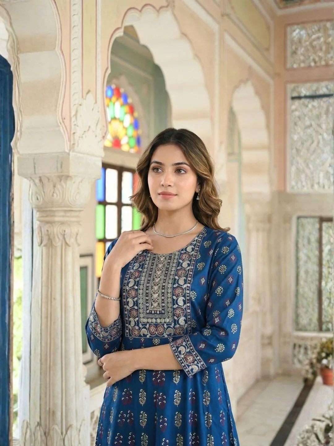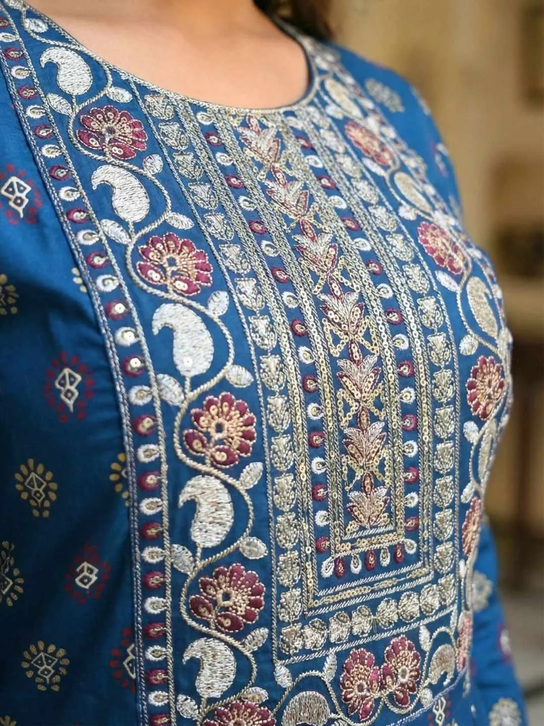 Photogenic: The rich blue color contrasts beautifully with the embroidery, ensuring you look radiant in photos.