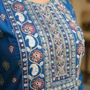 Sleeve Detailing: The 3/4th sleeves are finished with matching embroidered cuffs, ensuring a cohesive and polished appearance from every angle.