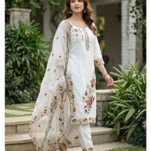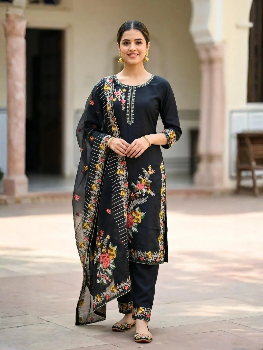Complete Ensemble: This 3-piece set (Kurta, Pant, Dupatta) is ready to wear, saving you styling time.