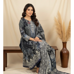 A masterpiece of comfort and style, this three-piece set is designed for the woman who appreciates the fine nuances of Karachi-inspired digital prints and the luxurious feel of premium muslin. The ensemble effortlessly balances a majestic silhouette with a modern, muted color palette, making it a must-have for your ethnic wardrobe.