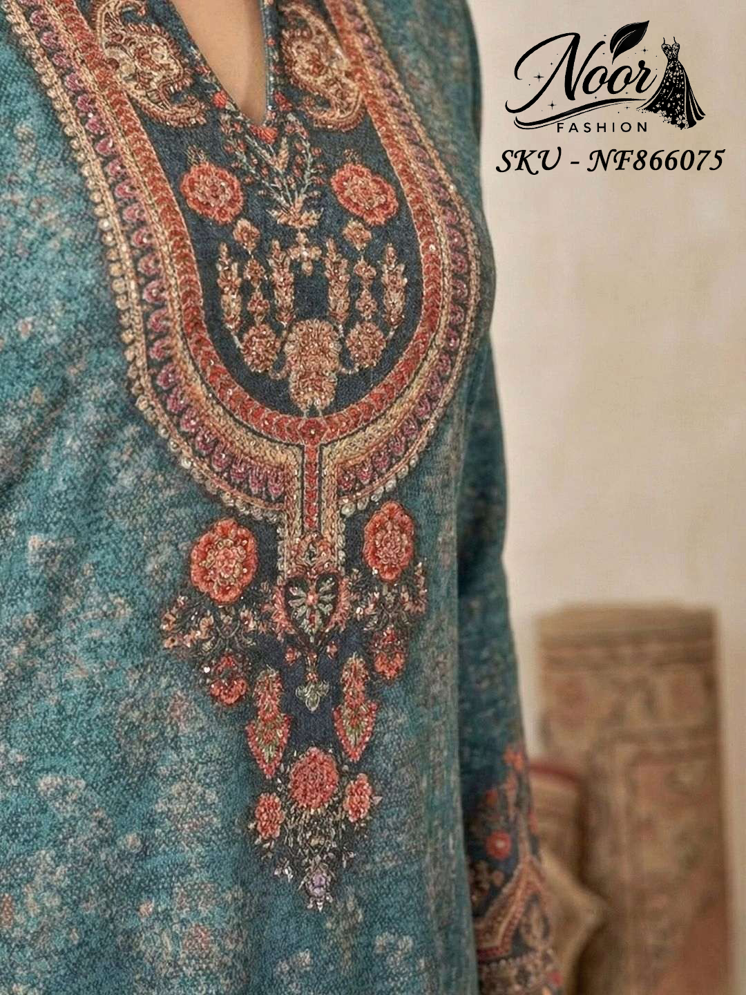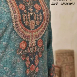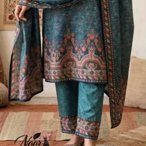 Elegant pashmina printed 3-piece suit featuring a soft kurta, matching bottom, and printed dupatta. Warm, lightweight, and comfortable — perfect for winter wear and daily styling.
