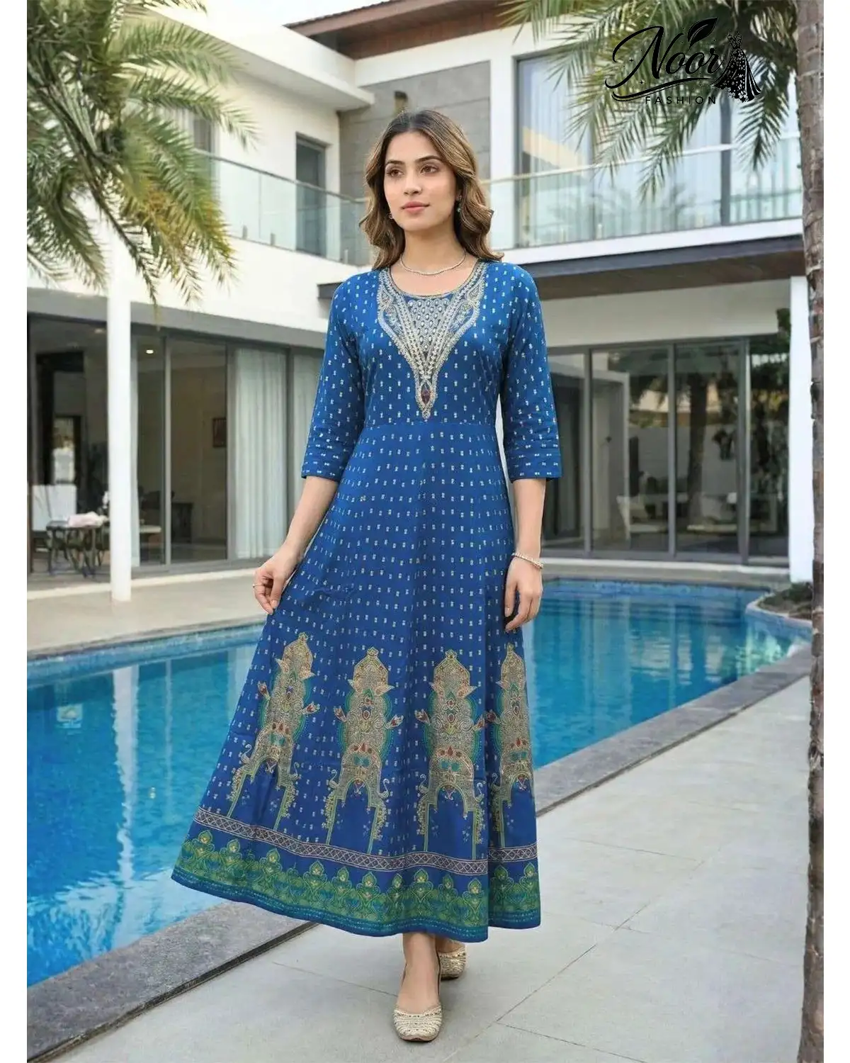 The Royal Gala Cotton Anarkali (SKU: NF486177) is designed for the woman who wishes to command the room with understated luxury. Whether you are captivated by the deep, serene Blue or the vibrant, passionate Pink, this gown offers a perfect blend of tradition and modernity. It is an ensemble that speaks of grand celebrations, tailored to make you feel like royalty at every turn.